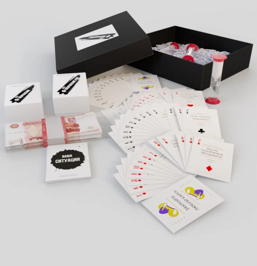 Карточная игра, которая содержит в себе две колоды с возражениями клиентов от продавцов и покупателей на вторичном рынке, игровые купюры и песочные часы 1-3-5 минут. Первая колода содержит в себе 54 карточки с возражениями от собственников и продавцов на звонке и встречах, создана для изучения 6-ти техник по отработке возражений. Вторая колода содержит 36 карточек с возражениями и заданиями, которые игроки должны выполнить. Задания: отработать возражения, назначить первую или вторую встречу, заключить договор, выявить тип и потребность клиента. Также содержит карты 10 типов клиентов с базовыми потребностями по модели S.A.B.O.N.E. и с разным уровнями сопротивления на возражения.